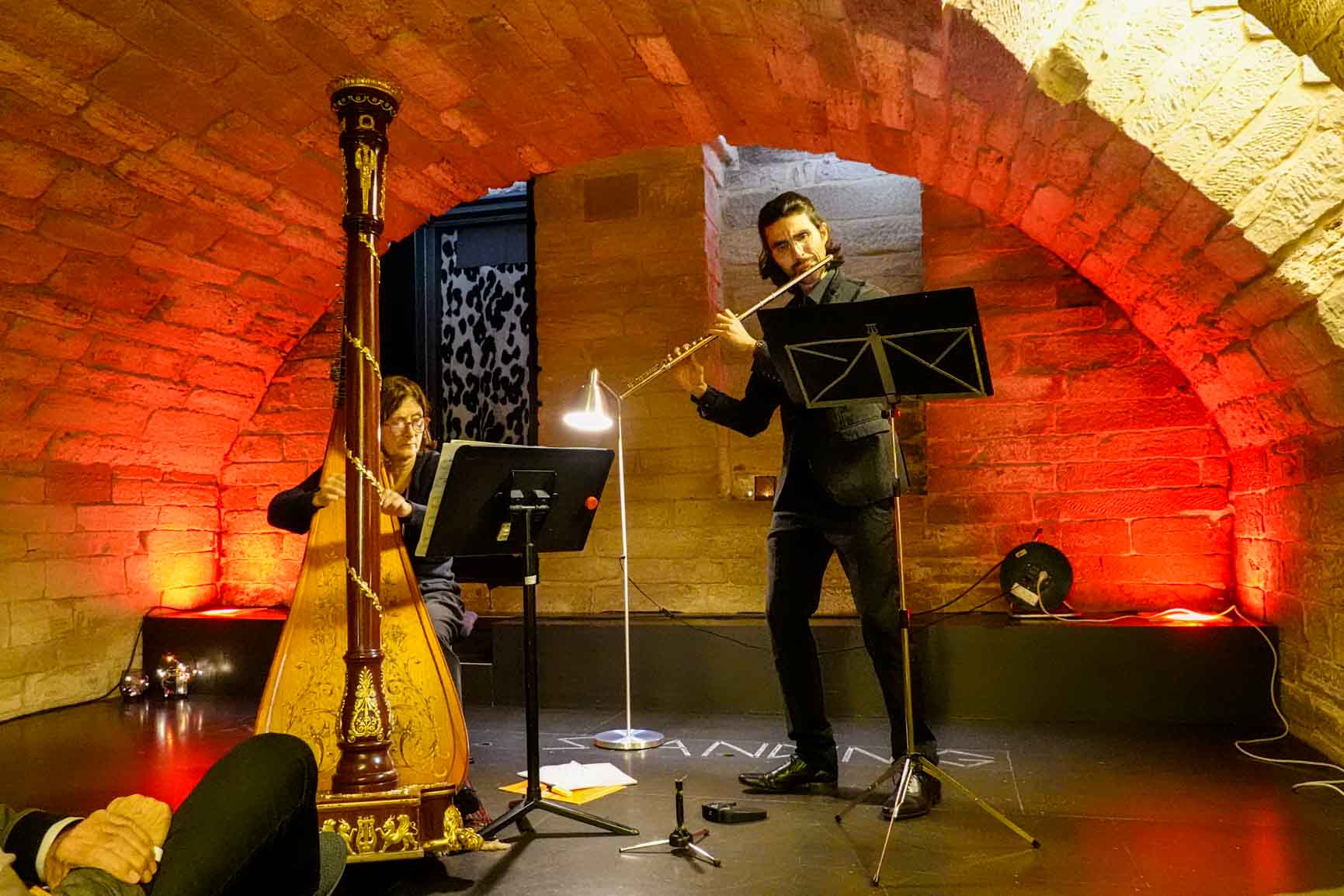 Im Dezember spielten die Harfenistin Lucia Cericola und der Flötist Vitor Diniz-Barbosa französische Harfenmusik.