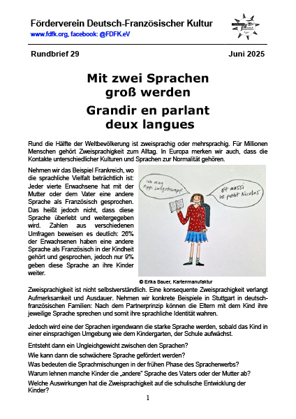 Ils seront le thème du prochain salon du Förderverein Deutsch-Französischer Kultur le 6 juillet 2025. Nous aurons l'occasion d'en discuter dans le cadre d'une table ronde ayant pour thème Grandir en parlant deux langues.