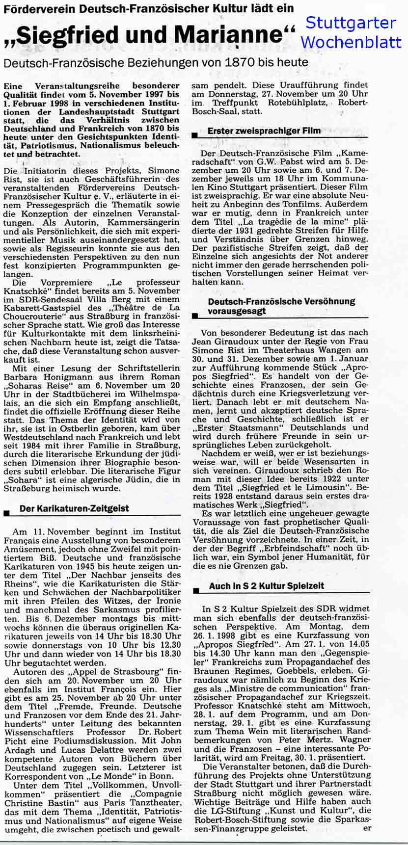 Warning: unserialize(): Error at offset 221151 of 221151 bytes in /www/htdocs/v159632/joomla.deutsch-franzoesische-kultur.de/libraries/src/Cache/Controller/OutputController.php on line 71 Siegfried und Marianne: Deutsch-Französische Beziehungen von 1870 bis heute – fdfk.org