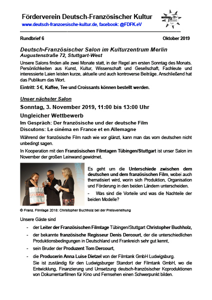 Diese Tradition spiegelt sich auch in zahlreichen Abkommen, Institutionen und Festivals wider: 1990 wurde der deutsch-französische Fernsehsender ARTE gegründet, im Jahr 2000 die deutsch-französische Filmakademie von Gerhard Schröder und Jacques Chirac ins Leben gerufen und 2001 das deutsch-französische Filmabkommen unterzeichnet.