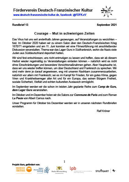 - Jugendbegegnung und Reise in Deutschland: Frz. Internierungslager Gurs – Besuch der französischen Gymnasiumschuler in Deutschland